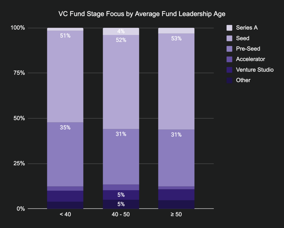 When it comes to strategy, some subtle but consistent differences emerge across age groups — particularly in terms of stage and sector focus.