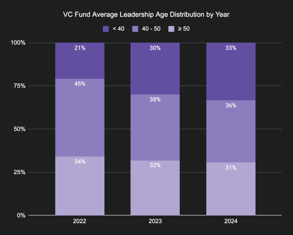 At the same time, experienced GPs continue to play a vital role — often bringing deeper networks, higher early traction, and greater specialization. Together, these age cohorts are building a more dynamic, multigenerational foundation for the future of VC.